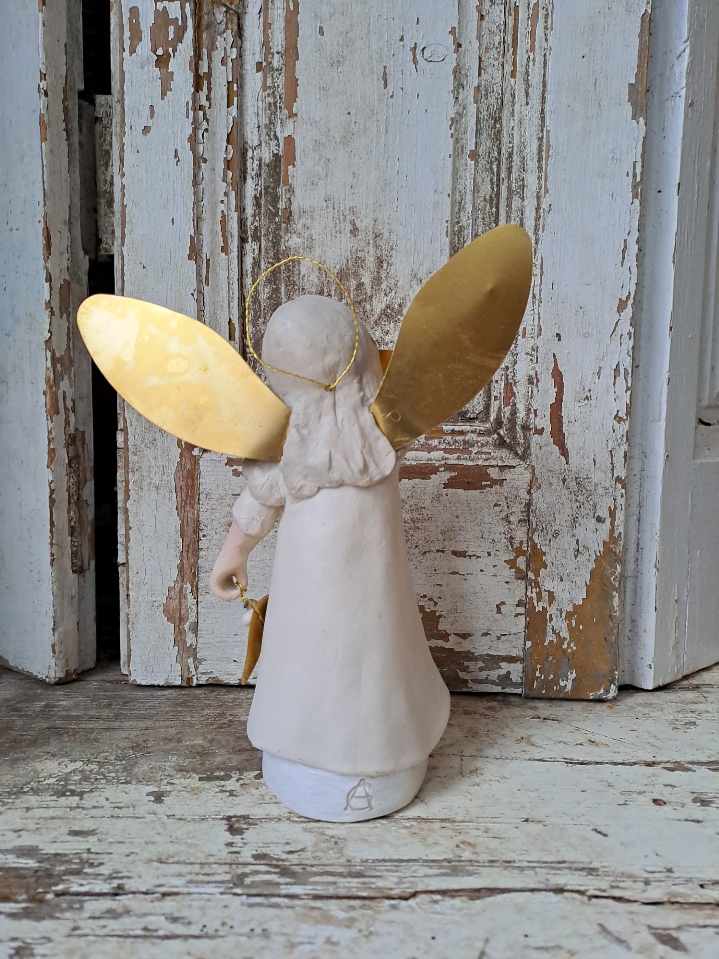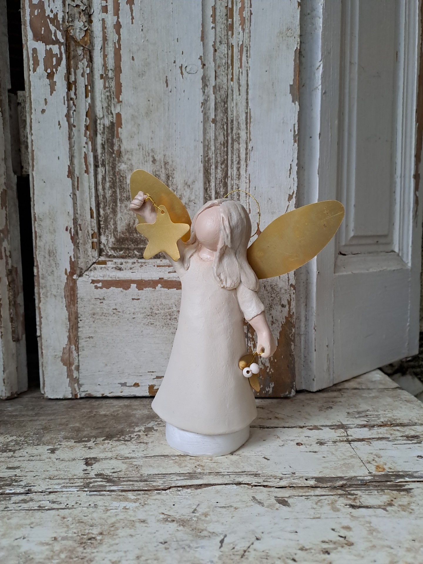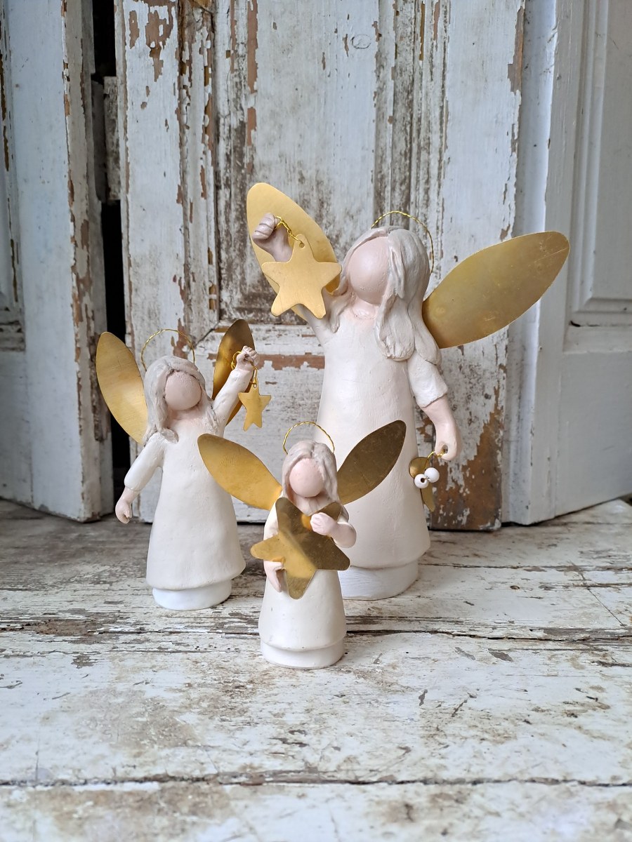 Mooie engel Noelle met gouden vleugels, ster en mistletoe