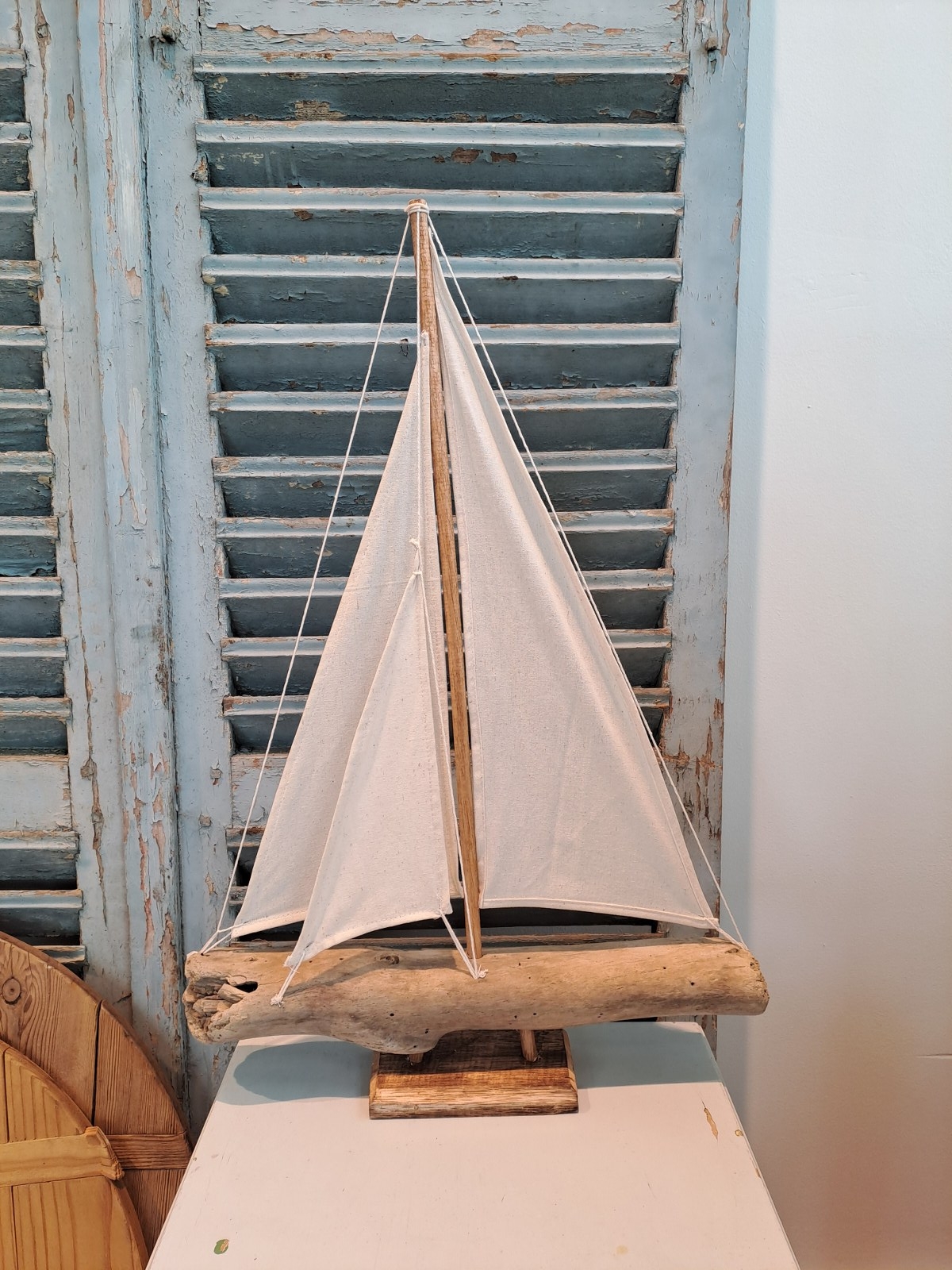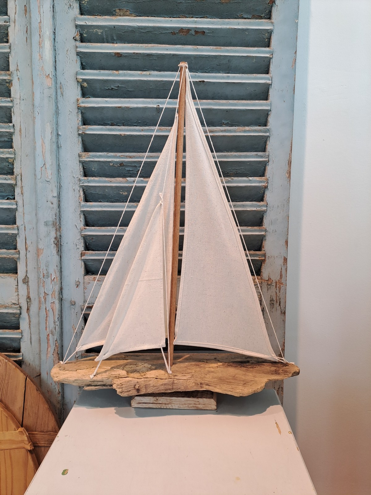 Boot gemaakt van drijfhout met linnen doek